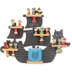 Das Tonie Regal „Auf den sieben Weltmeeren“ in der Farbe Sturmgrau ist die perfekte BĂĽhne fĂĽr die Tonie-Sammlung. Dabei ist es viel mehr als ein dekoratives Wandregal: Es ist eine moderne Bibliothek, die entworfen wurde, um die Lieblings-Tonies, die Toniebox und ihre Ladestation unterzubringen. Auf dem sturmgrauen Schiff schippert die Crew durch ruhige Gewässer, bevor sie in neue Abenteuer aufbricht. SĂĽĂźe Motive aus der Tonie-Welt machen den bezaubernden Blickfang zum einzigartigen Hingucker in jedem Kinderzimmer. Bis zu 35 Tonies stehen oder hängen sicher auf den magnetischen Holzflächen. Die Toniebox hat ihren eigenen Platz mit Ă–ffnung und Vertiefung fĂĽr ihre Ladestation. Das Regal lässt sich schnell und einfach an der Wand montieren, die passenden Schrauben und DĂĽbel sind dabei.Art.-Nr.: 1918274